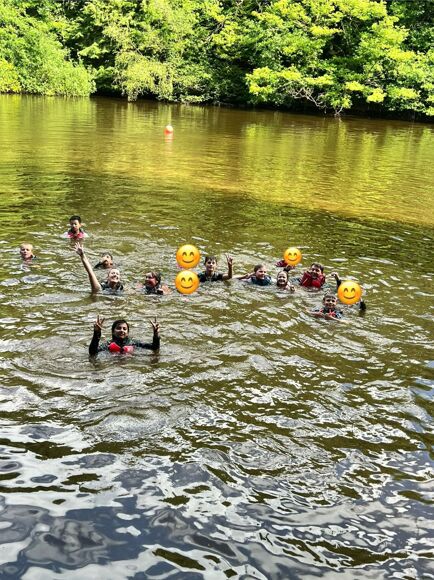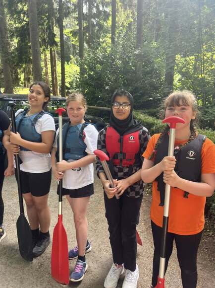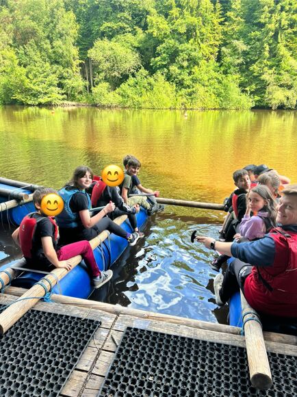 After this, we got ready for rafting. We learnt how to row as a team and competed in races against each other (Miss James’ team The Royal Sharks came out top!). Finally, we designed our own dance on the rafts – what a skill!