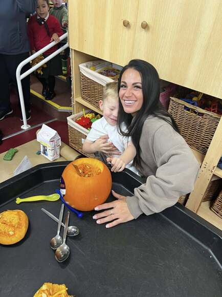 Families enjoyed a guided tour of the classroom, led proudly by the children, showcasing a range of activities that reflected their learning and creativity. The afternoon included a delightful performance of nursery rhymes, hands-on junk modelling, sensory pumpkin explorations and opportunities for imaginative mark making.